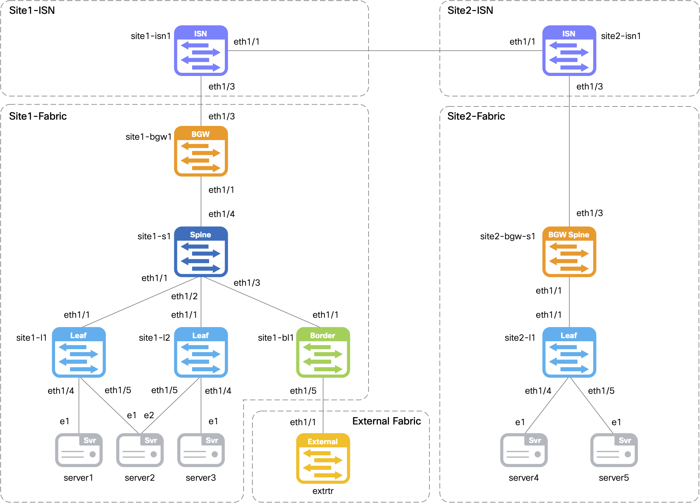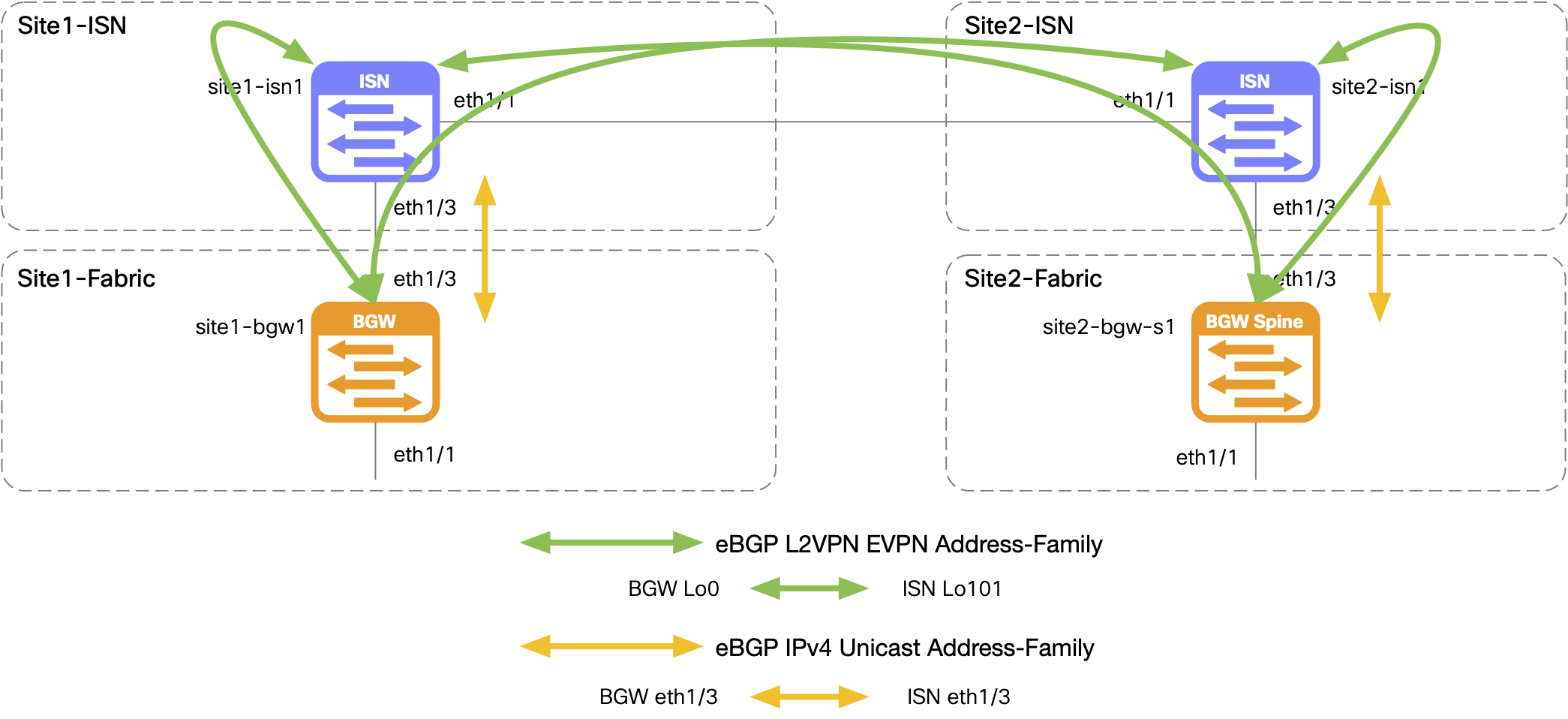 along with the respective site ISN fabrics: site1-isn and site2-isn.
