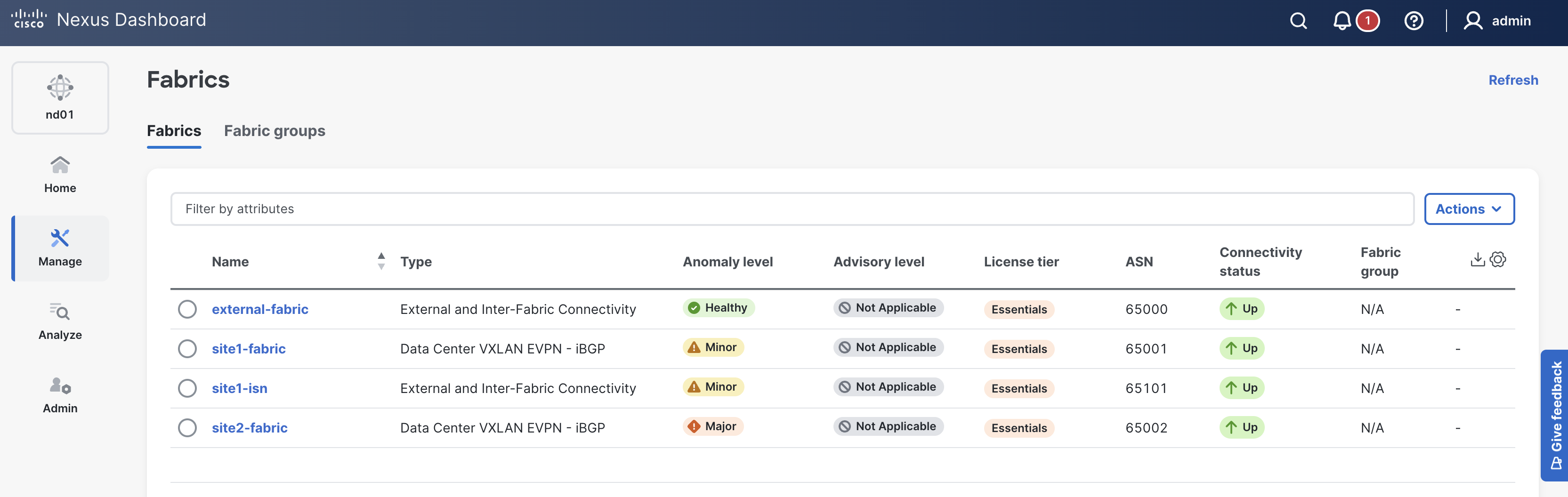 Please continue to the next section to model and setup your Site2 ISN fabric.