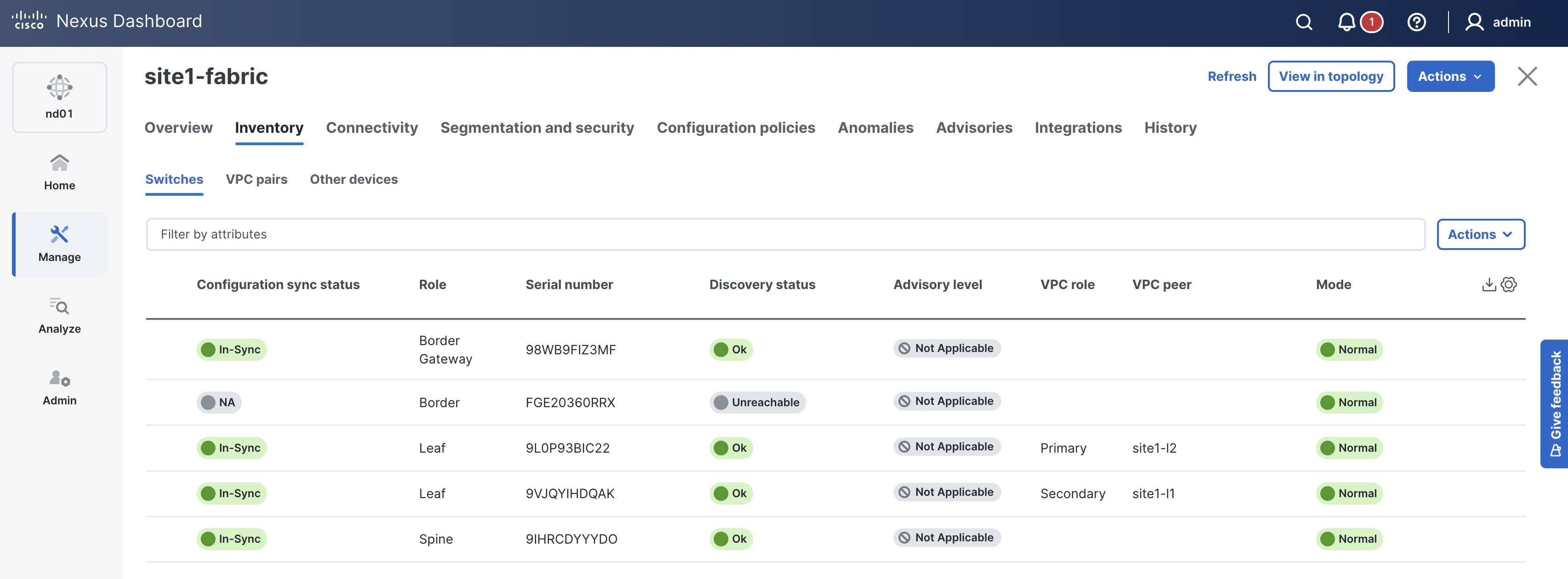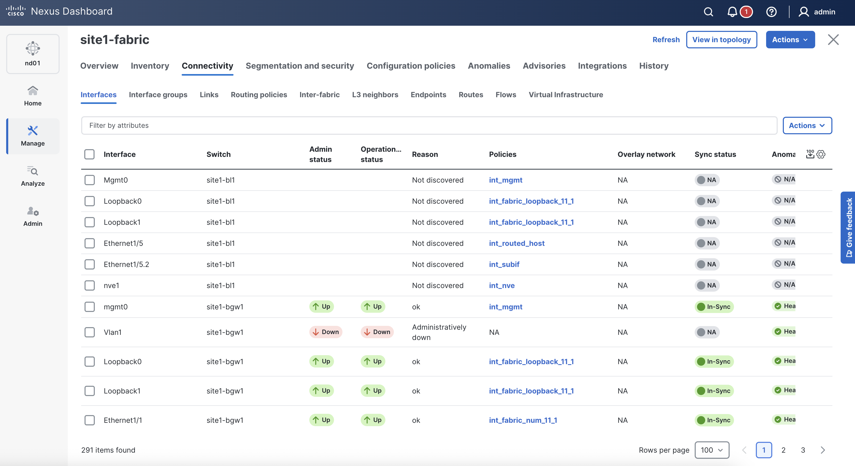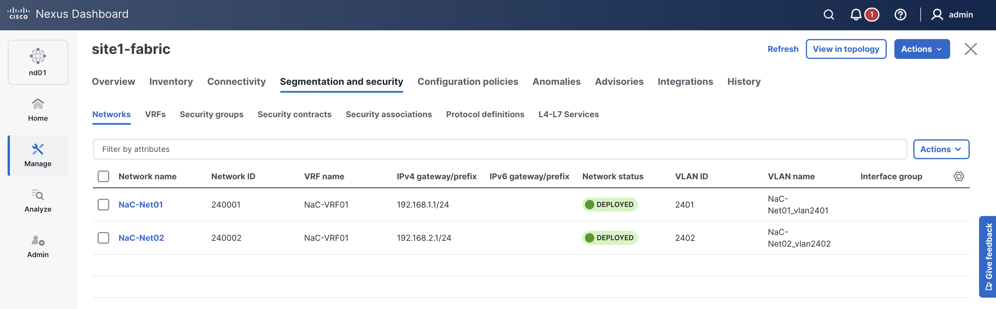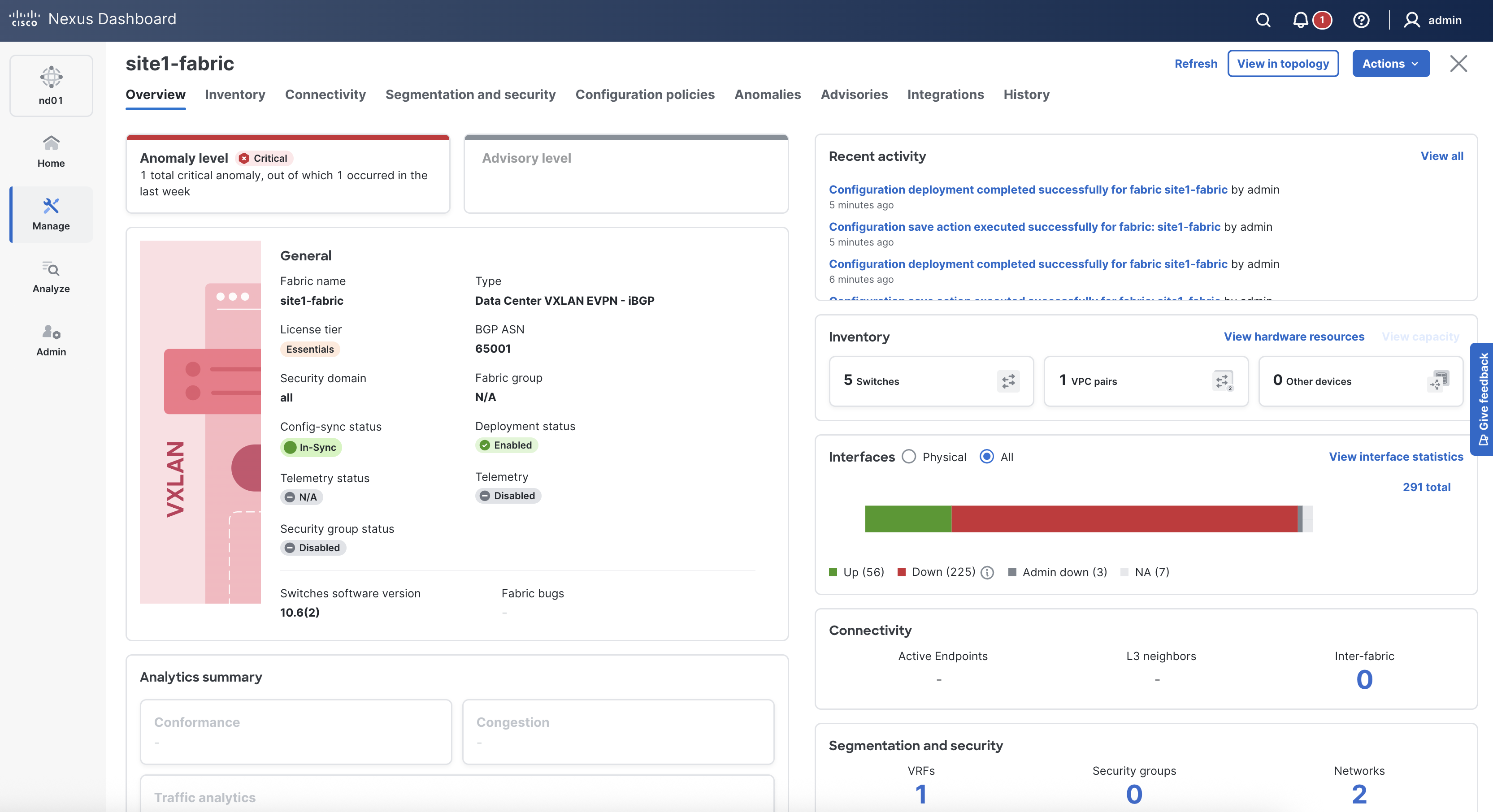 Return to your ND browser window and verify the deployment of the fabric configuration.
