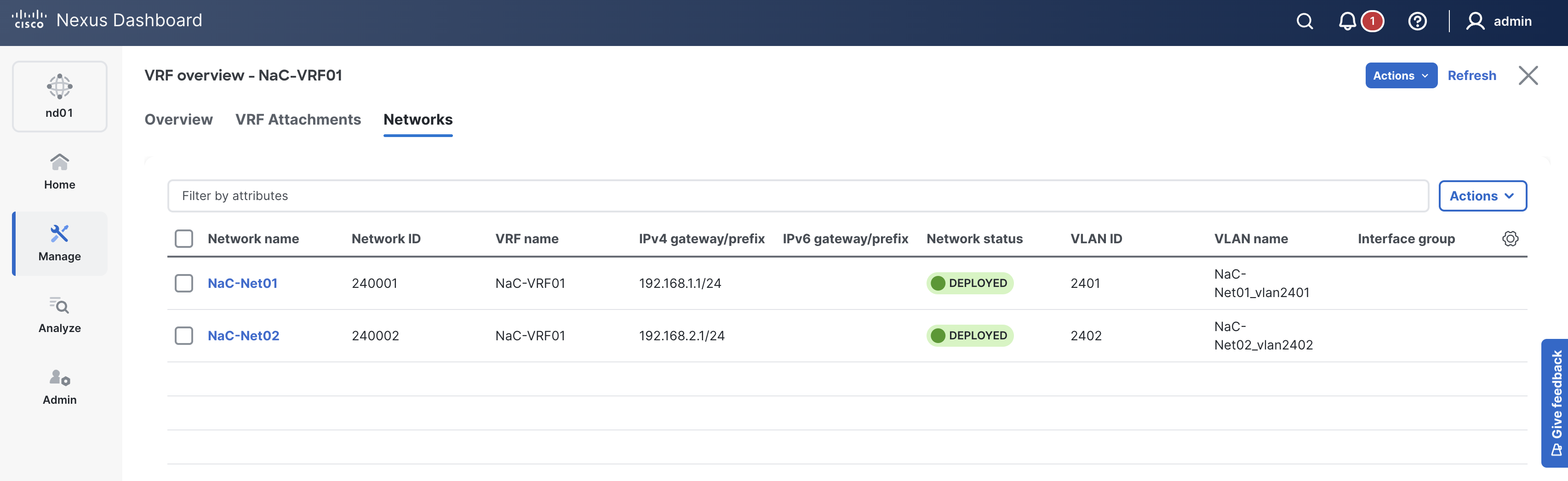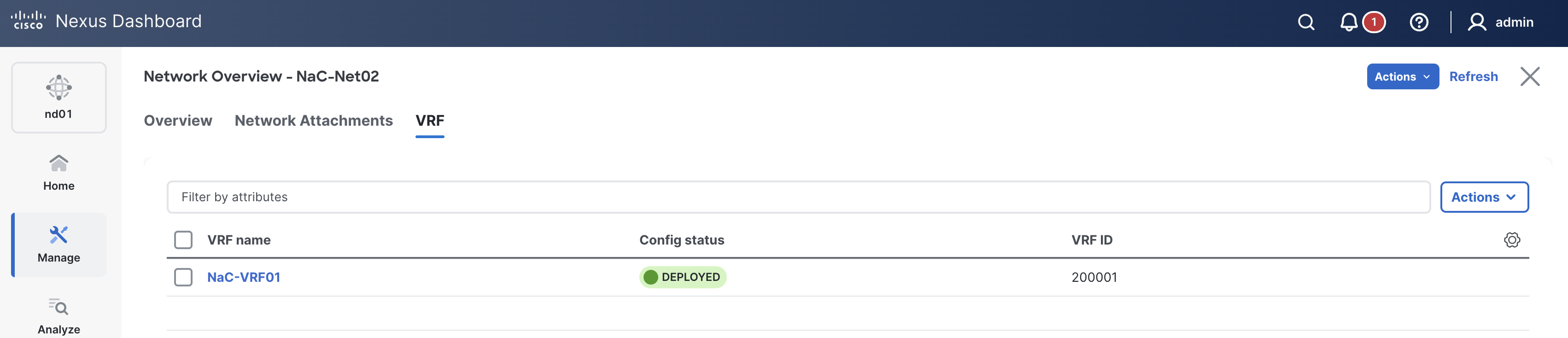 Up to this point, all of the switch, Interface, VRF, and Network configurations have been pushed to ND. However, their Config Status shows as Pending since you have yet to actually deploy this configuration.