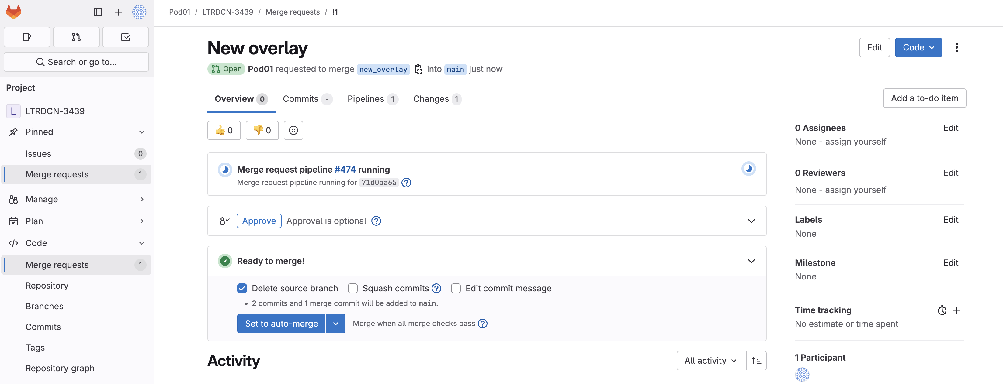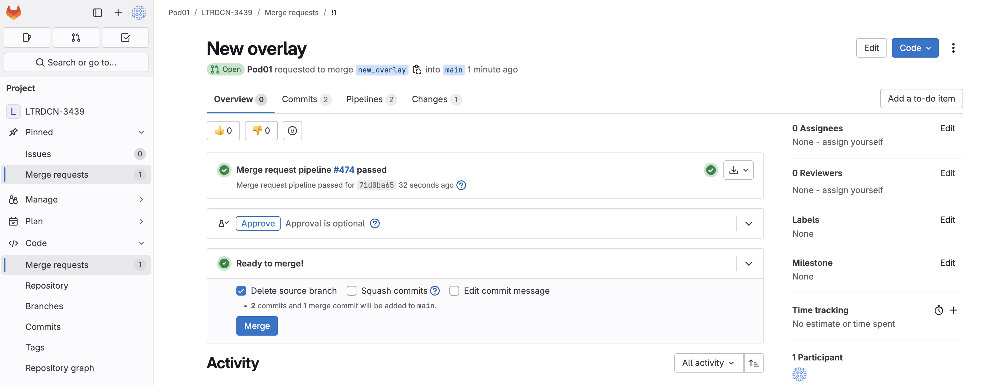 Related merge request !# to merge new_overlay (The link is !1 in the screenshot below).